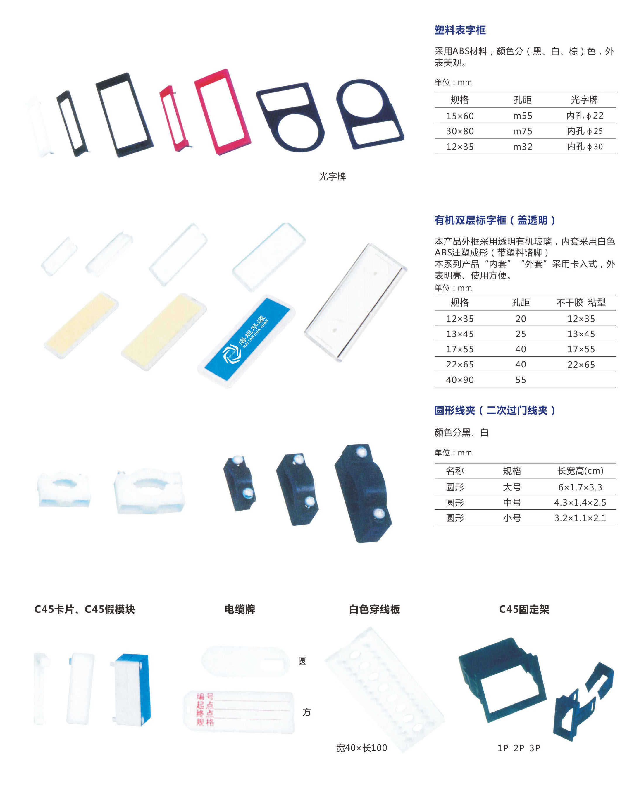 测控板、观察框、表框、标字框、电缆夹